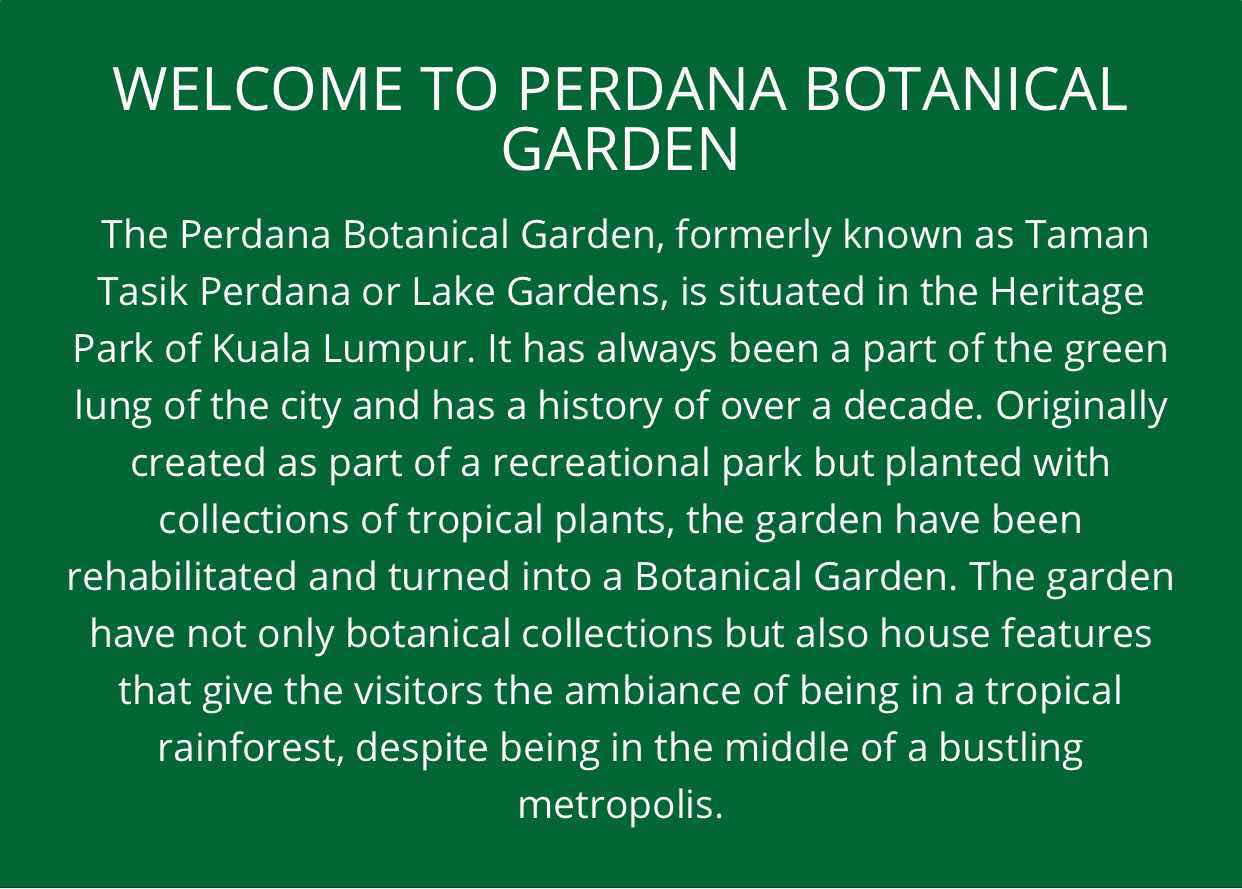 Sebelum itu, serba ringkas tentang Lake Gardens yang dipetik dari laman rasmi Taman Botani Perdana dan Wikipedia