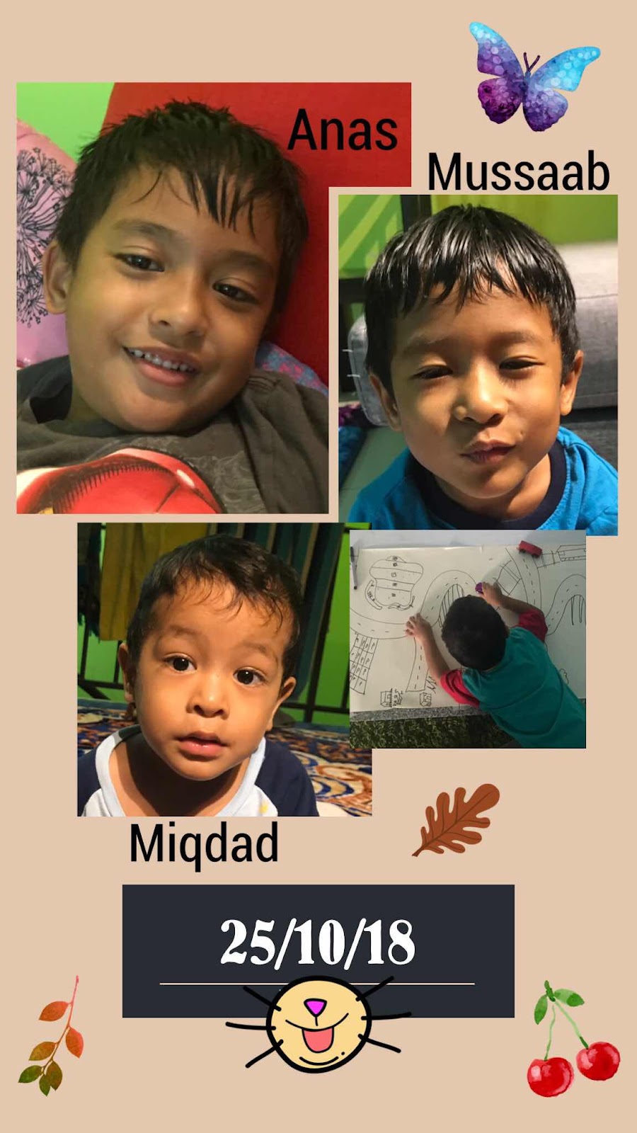 Jam 6 petang, layan kuiz di YouTube sama-sama. Anas sambil jawab soalan sambil mewarna. Main kuiz sampai jam 6.30. Lepas tu semua naik mandi dan siap berpakaian tidur. Sempat ummi kemas di ruang tamu dan kemas pakaian di atas. Mussaab sibuk melukis, Miqdad bermain tractor, Anas pula ambil Hp ummi dan asyik menatap gambar di galeri.